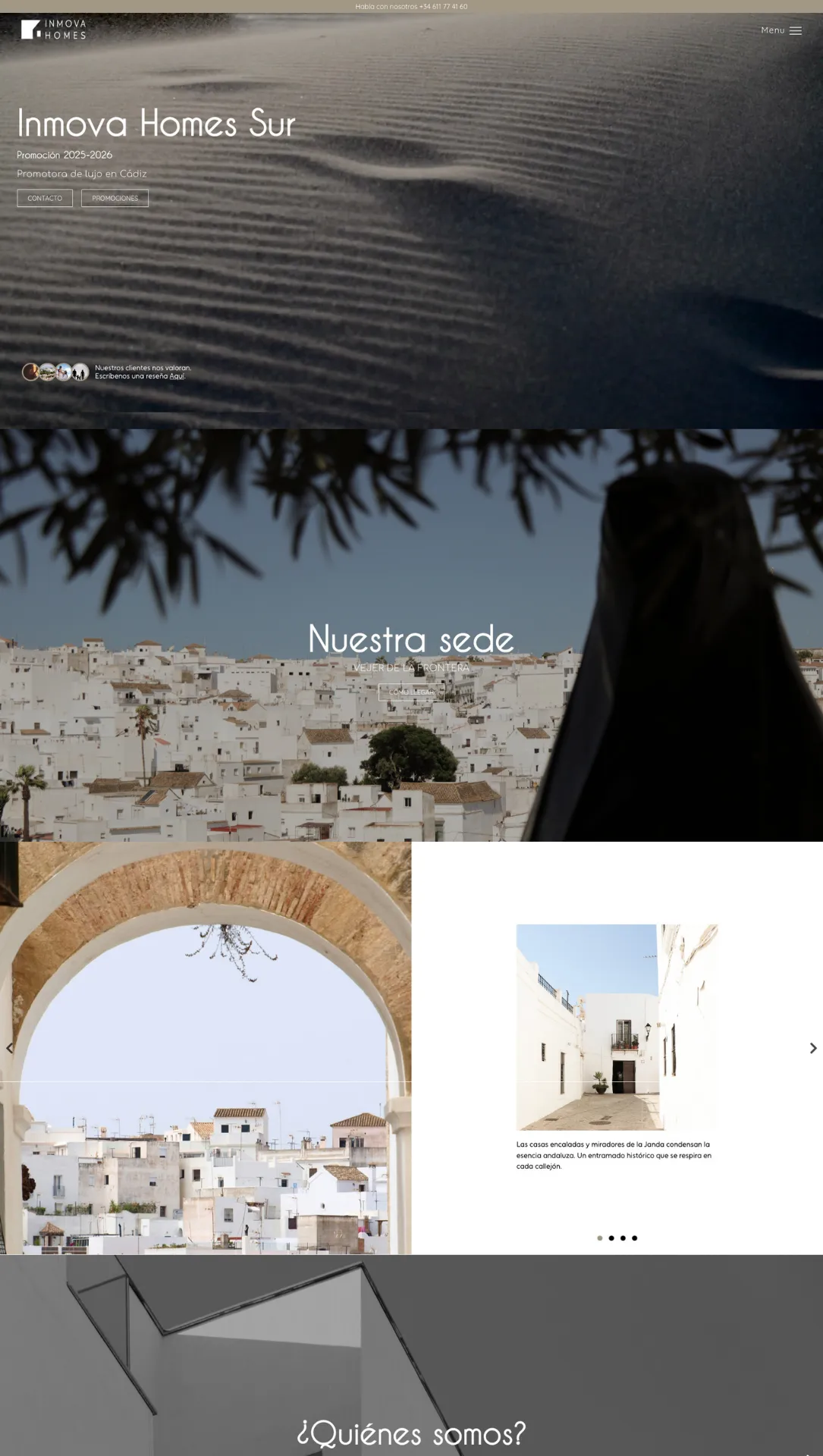 Inmova Homes nace como una promotora inmobiliaria de obra nueva en la provincia de Cádiz, dirigida a un perfil inversor y comprador de alto poder adquisitivo, tanto nacional como internacional. El reto era claro: construir desde cero una identidad digital capaz de transmitir confianza, solidez y valor real en un producto inmobiliario complejo y premium.