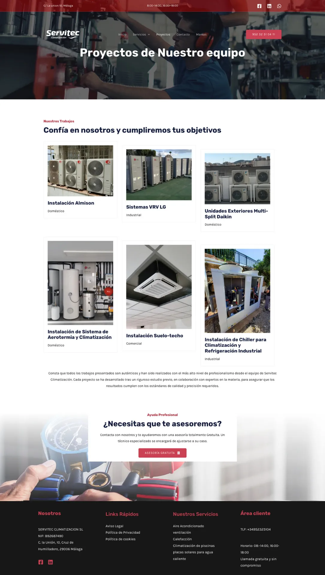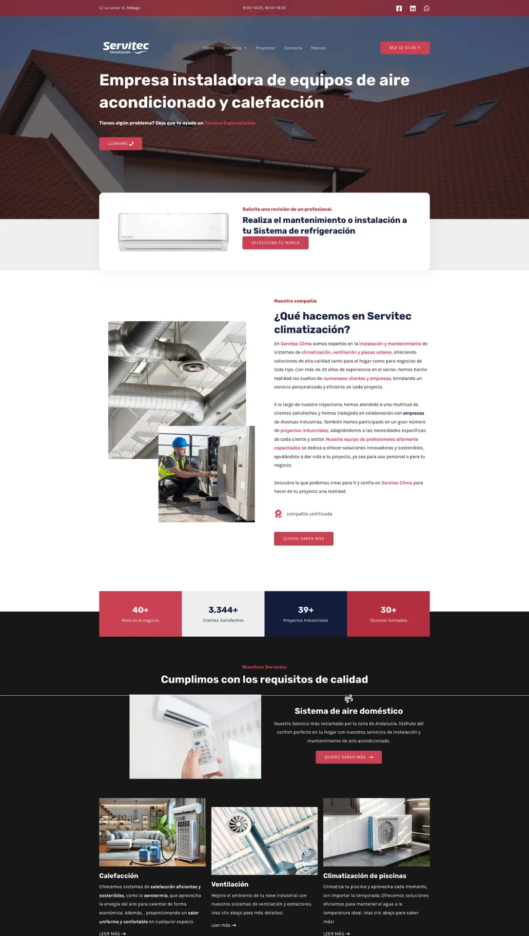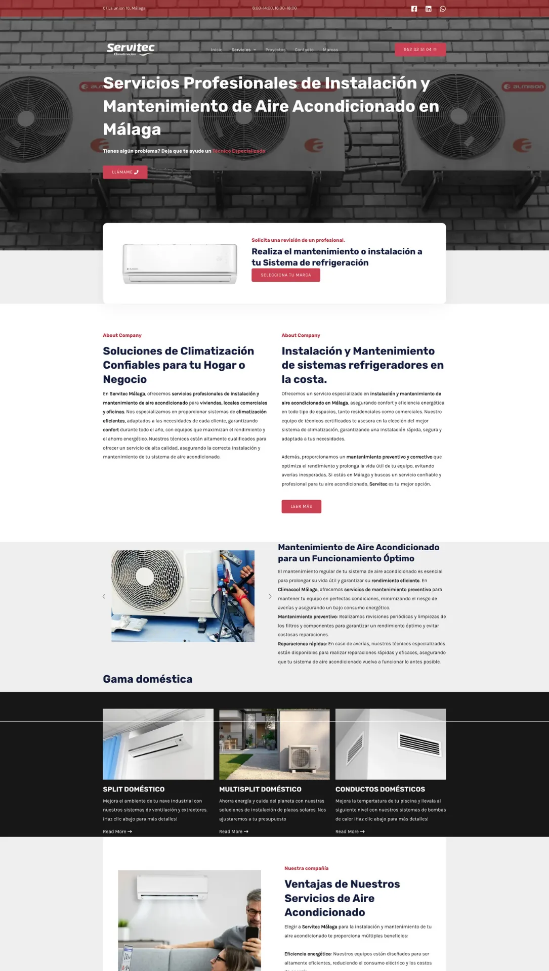 Servitec Climatización necesitaba una web que hiciera una cosa muy concreta: convertir visitas en avisos reales. No hablamos de branding bonito ni de postureo digital, sino de una estructura clara, rápida y orientada a acción para un negocio de servicios técnicos.